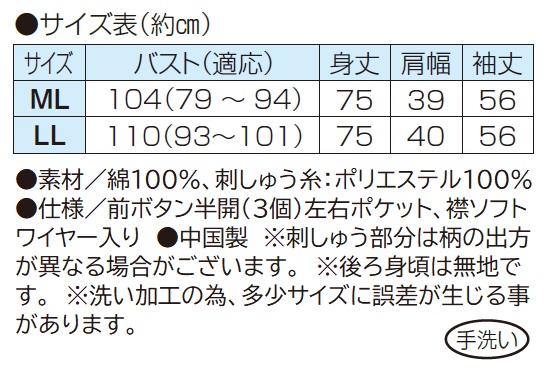 ●仕様/前ボタン半開(3個)左右ポケット、襟ソフトワイヤー入り