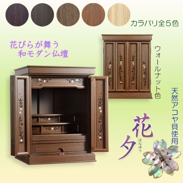 ウォールナット色 モダン仏壇【伝統型仏壇:天然貝・螺鈿細工 和モダン・花夕(はなゆう)20号】小型仏壇 送料無料