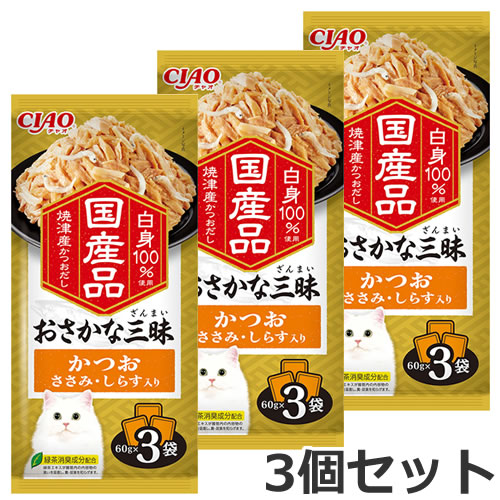 【メール便】3個セット いなば CIAO チャオ おさかな三昧 かつお ささみ・しらす入り 3袋入×3個セット 猫用ウェットフード パウチ 国産 送料無料