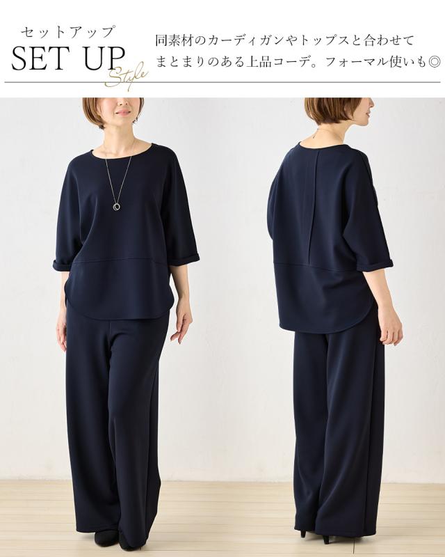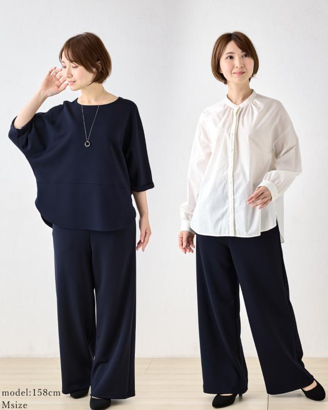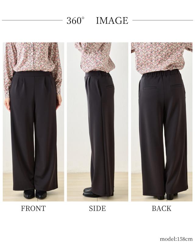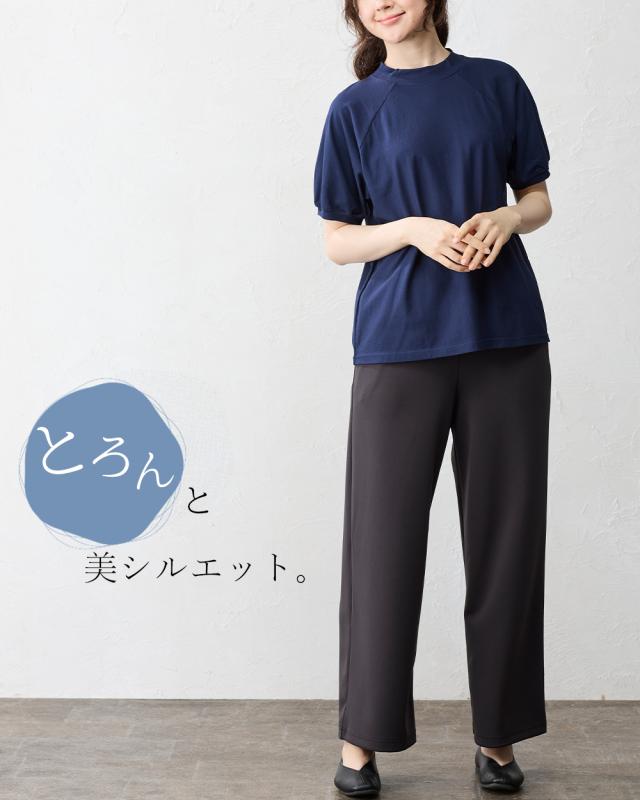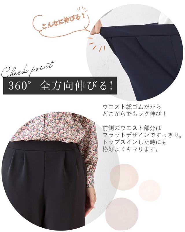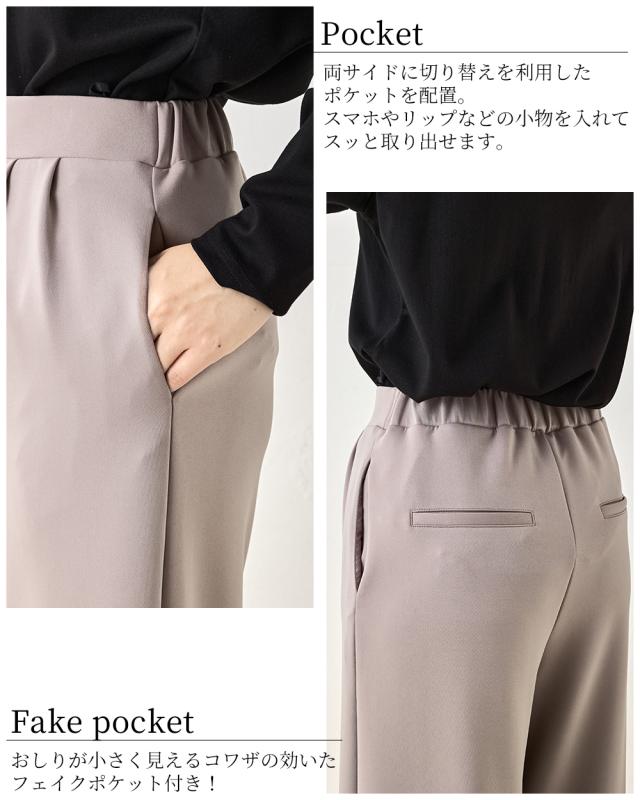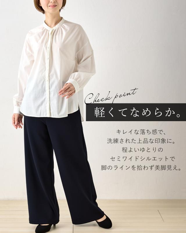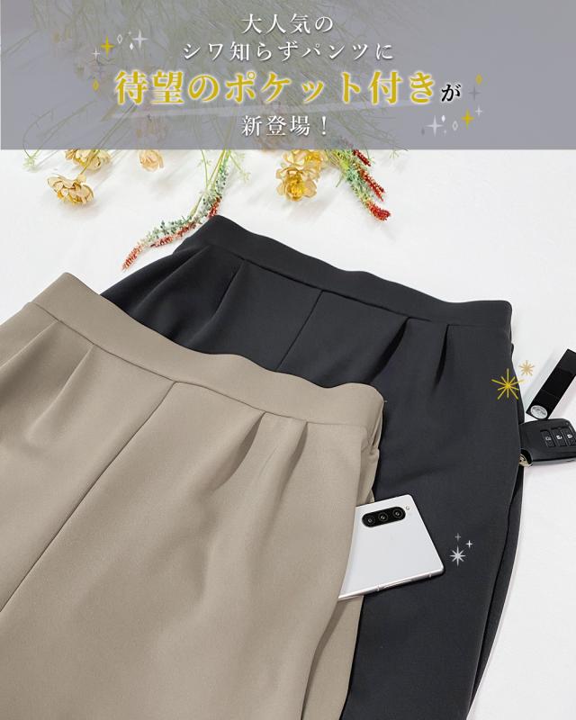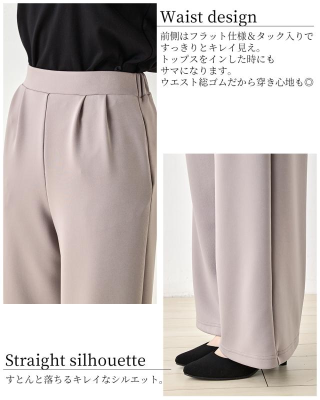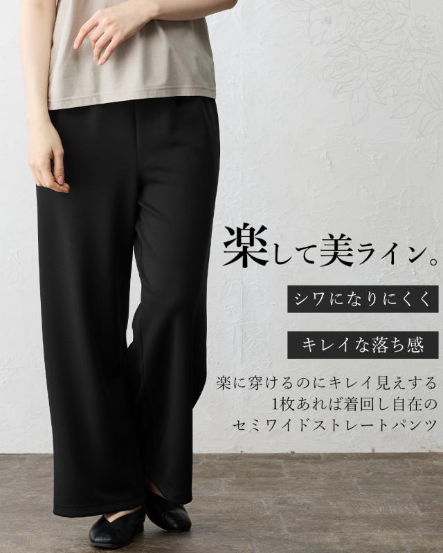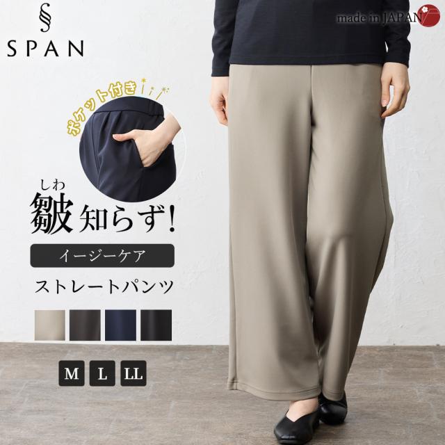 ストレートパンツ セミワイド レディース パンツ 皺知らず 日本製 ポケット付き きれいめ M L LL 大きいサイズ 30代 40代 50代 60代 女性 春 夏 秋 冬 ファッション フォーマル ウエストゴム イージーケア イージーパンツ