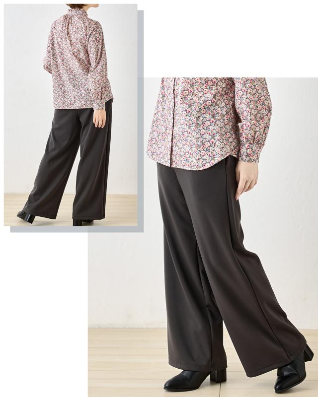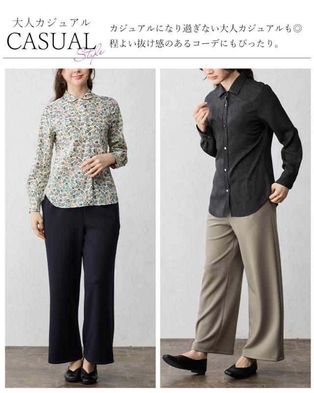 シワになりづらく、お手入れもカンタンなキレイ見えストレートパンツ。