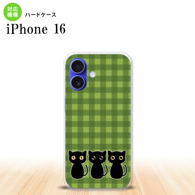 iPhone16 iPhone16 スマホケース 背面ケース ハードケース 猫 イラスト 緑 グリーン 2024年 9月発売 nk-i16-1140