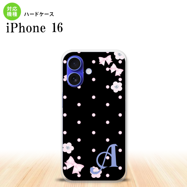 iPhone16 iPhone16 スマホケース 背面ケース ハードケース 花柄 ドット リボン 黒 +アルファベット 2024年 9月発売 nk-i16-352i