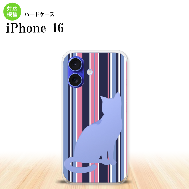 iPhone16 iPhone16 スマホケース 背面ケース ハードケース 猫 ボーダー A 青ピンク 2024年 9月発売 nk-i16-965