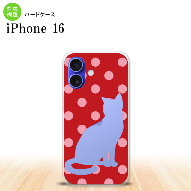 iPhone16 iPhone16 スマホケース 背面ケース ハードケース 猫 水玉 赤 ピンク 2024年 9月発売 nk-i16-973