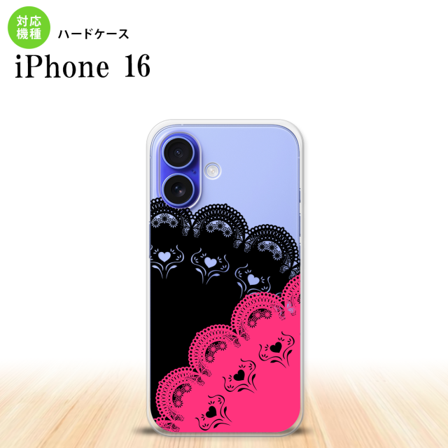 iPhone16 iPhone16 スマホケース 背面ケース ハードケース レース B 黒 ピンク 2024年 9月発売 nk-i16-728