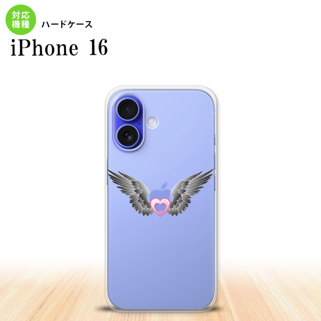 iPhone16 iPhone16 スマホケース 背面ケース ハードケース 黒翼 ハート ピンク 2024年 9月発売 nk-i16-465