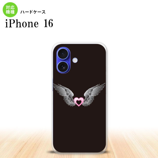 iPhone16 iPhone16 スマホケース 背面ケース ハードケース 黒翼 ハート 黒 ピンク 2024年 9月発売 nk-i16-467