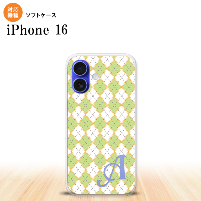 iPhone16 iPhone16 スマホケース 背面ケースソフトケース アーガイル 緑 グレー +アルファベット 2024年 9月発売 nk-i16-tp1407i