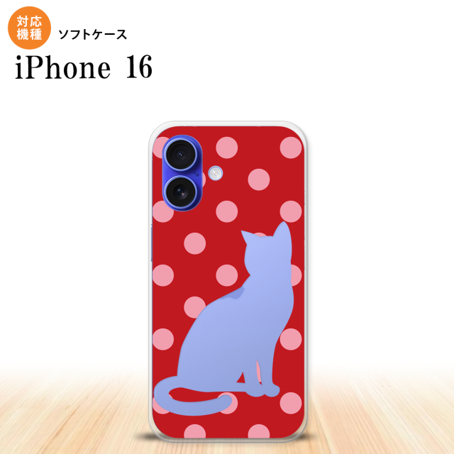 iPhone16 iPhone16 スマホケース 背面ケースソフトケース 猫 水玉 赤 ピンク 2024年 9月発売 nk-i16-tp973