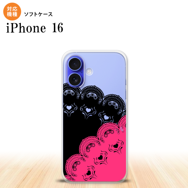 iPhone16 iPhone16 スマホケース 背面ケースソフトケース レース B 黒 ピンク 2024年 9月発売 nk-i16-tp728