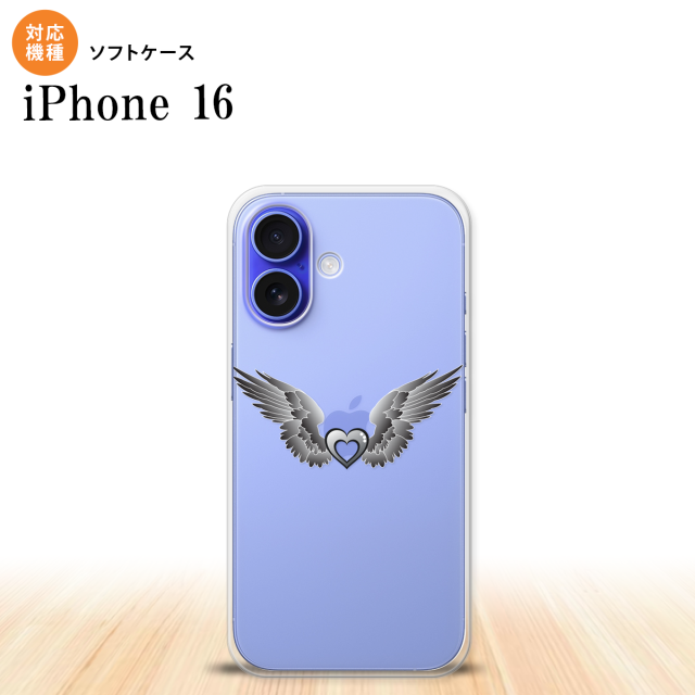 iPhone16 iPhone16 スマホケース 背面ケースソフトケース 黒翼 ハート グレー 2024年 9月発売 nk-i16-tp466