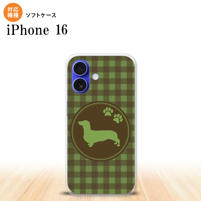 iPhone16 iPhone16 スマホケース 背面ケースソフトケース 犬 ダックスフンド B 緑 2024年 9月発売 nk-i16-tp816