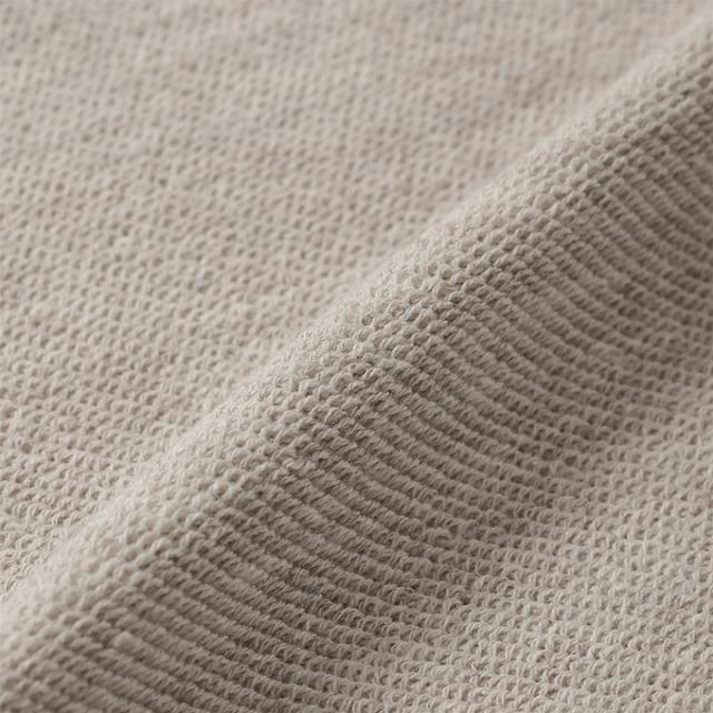 リサイクルの国際基準を満たしているGRS認定を取得しているリサイクルコットン。リサイクルコットンを色分けし、独自の技術で糸へ再生しています。糸を紡績する工程で大幅なエネルギー削減を行うことが可能です。環境への負担に配慮した素材。