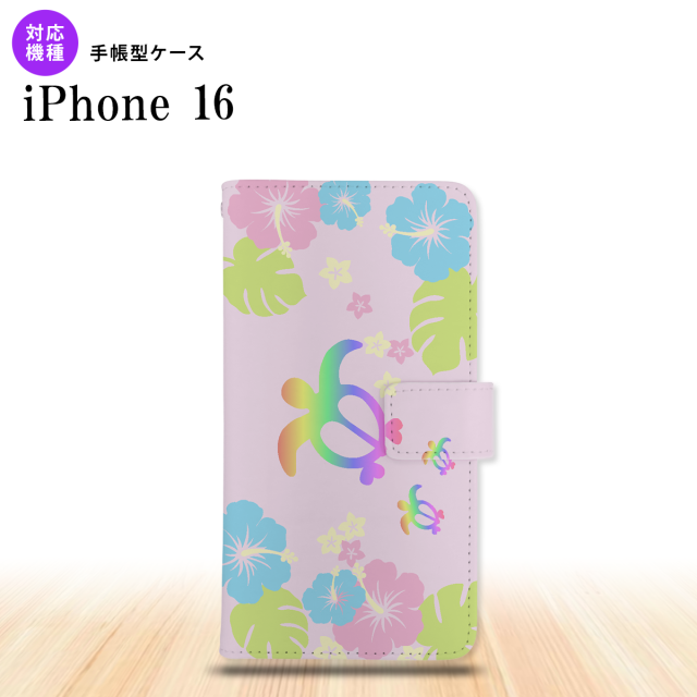 iPhone16 iPhone16 手帳型スマホケース カバー ホヌ ハイビスカス ピンク 2024年 9月発売 nk-004s-i16-dr681
