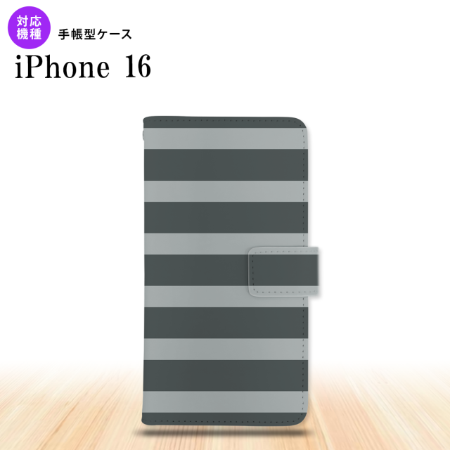 iPhone16 iPhone16 手帳型スマホケース カバー ボーダー 大 グレー 2024年 9月発売 nk-004s-i16-dr791