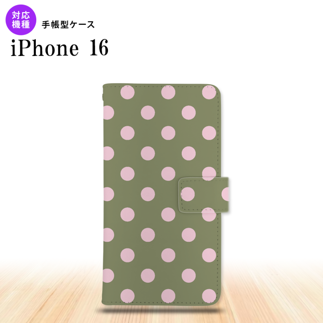 iPhone16 iPhone16 手帳型スマホケース カバー ドット 水玉 モスグリーン