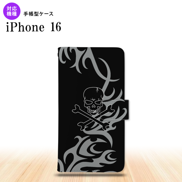 iPhone16 iPhone16 手帳型スマホケース カバー ドクロ 黒 グレー 2024年 9月発売 nk-004s-i16-dr866