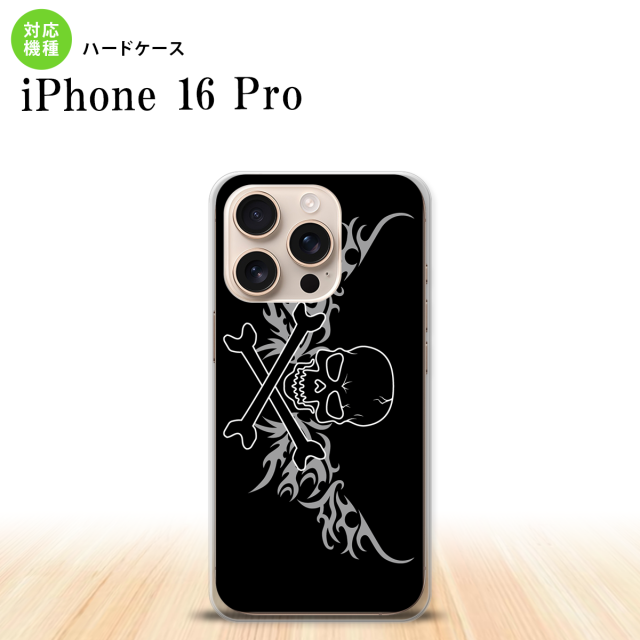 iPhone16 pro iPhone16 pro スマホケース 背面ケース ハードケース ドクロ 黒 横 グレー 2024年 9月発売 nk-i16p-874