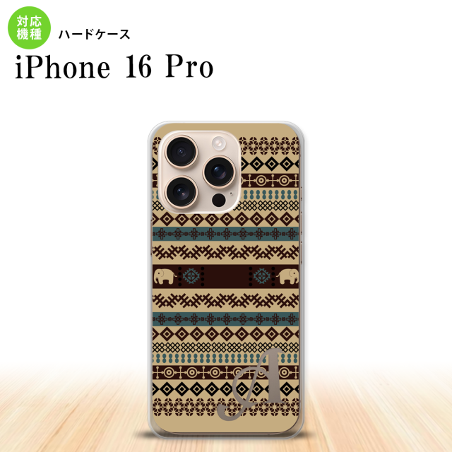 iPhone16 pro iPhone16 pro スマホケース 背面ケース ハードケース エスニック ゾウ ベージュ ブルー +アルファベット 2024年 9月発売 nk-i16p-1572i