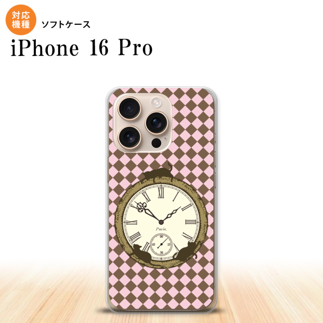 iPhone16 pro iPhone16 pro スマホケース 背面ケースソフトケース 時計 チェック ピンク 2024年 9月発売 nk-i16p-tp1221