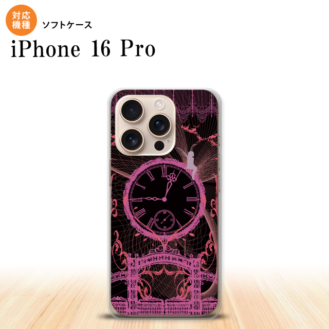 iPhone16 pro iPhone16 pro スマホケース 背面ケースソフトケース 時計 妖精 黒 ピンク 2024年 9月発売 nk-i16p-tp1255