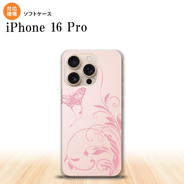 iPhone16 pro iPhone16 pro スマホケース 背面ケースソフトケース 蝶と草 ピンク 2024年 9月発売 nk-i16p-tp1632