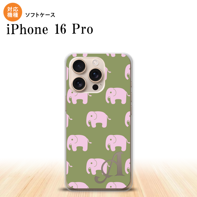 iPhone16 pro iPhone16 pro スマホケース 背面ケースソフトケース ゾウ モスグリーン +アルファベット 2024年 9月発売 nk-i16p-tp773i