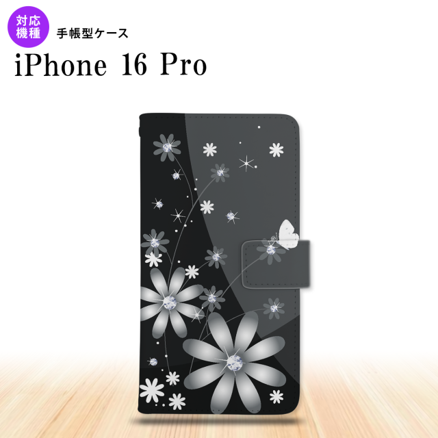 iPhone16 pro iPhone16 pro 手帳型スマホケース カバー 花柄 ガーベラ 黒 2024年 9月発売 nk-004s-i16p-dr065
