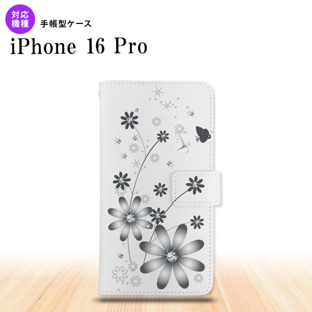 iPhone16 pro iPhone16 pro 手帳型スマホケース カバー 花柄 ガーベラ 透明 グレー 2024年 9月発売 nk-004s-i16p-dr071