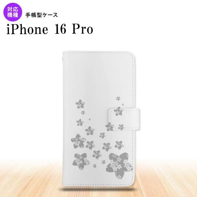 iPhone16 pro iPhone16 pro 手帳型スマホケース カバー 花柄 サクラ クリア グレー 2024年 9月発売 nk-004s-i16p-dr187