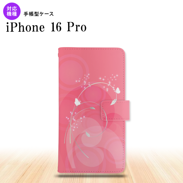iPhone16 pro iPhone16 pro 手帳型スマホケース カバー バタフライ 蝶 ピンク 2024年 9月発売 nk-004s-i16p-dr202
