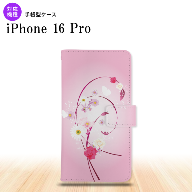 iPhone16 pro iPhone16 pro 手帳型スマホケース カバー 花柄 ミックス ピンク 2024年 9月発売 nk-004s-i16p-dr273