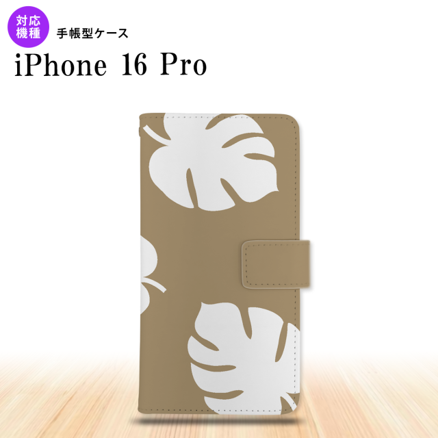 iPhone16 pro iPhone16 pro 手帳型スマホケース カバー モンステラ ベージュ 白 2024年 9月発売 nk-004s-i16p-dr455