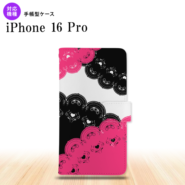 iPhone16 pro iPhone16 pro 手帳型スマホケース カバー レース 黒 ピンク 2024年 9月発売 nk-004s-i16p-dr728