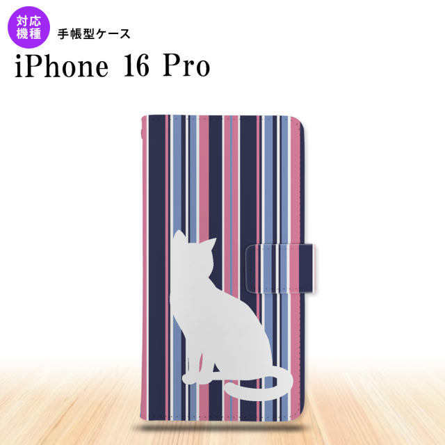 iPhone16 pro iPhone16 pro 手帳型スマホケース カバー 猫 ストライプ 青ピンク 2024年 9月発売 nk-004s-i16p-dr965