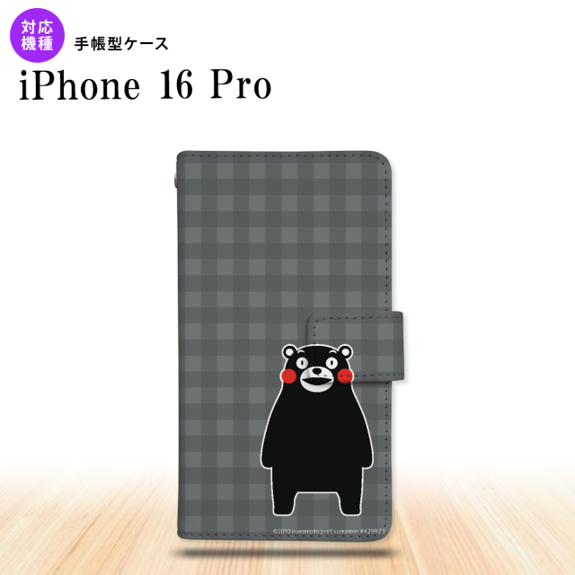 iPhone16 pro iPhone16 pro 手帳型スマホケース カバー くまモン チェック グレー 2024年 9月発売 nk-004s-i16p-drkm19