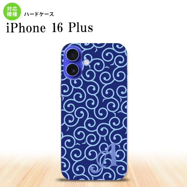 iPhone16 plus iPhone16 plus スマホケース 背面ケース ハードケース 唐草 青 水色 +アルファベット 2024年 9月発売 nk-i16pl-1131i