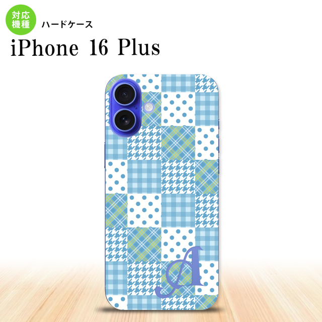iPhone16 plus iPhone16 plus スマホケース 背面ケース ハードケース パッチワーク 水色 +アルファベット 2024年 9月発売 nk-i16pl-1064i