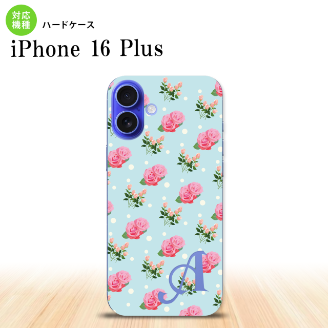 iPhone16 plus iPhone16 plus スマホケース 背面ケース ハードケース 花柄 バラ ドット 水色 +アルファベット 2024年 9月発売 nk-i16pl-241i