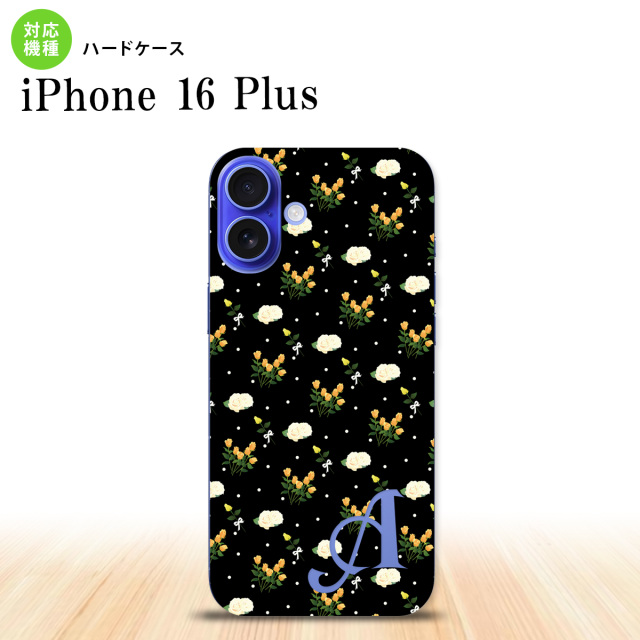 iPhone16 plus iPhone16 plus スマホケース 背面ケース ハードケース 花柄 バラ ドット 小 黒 +アルファベット 2024年 9月発売 nk-i16pl-250i