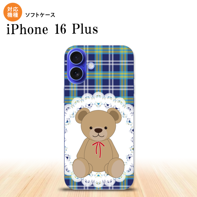 iPhone16 plus iPhone16 plus スマホケース 背面ケースソフトケース くま チェック レース 青 2024年 9月発売 nk-i16pl-tp758