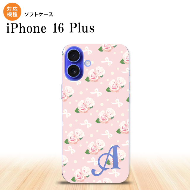 iPhone16 plus iPhone16 plus スマホケース 背面ケースソフトケース 花柄 バラ リボン ピンク +アルファベット 2024年 9月発売 nk-i16pl-tp256i