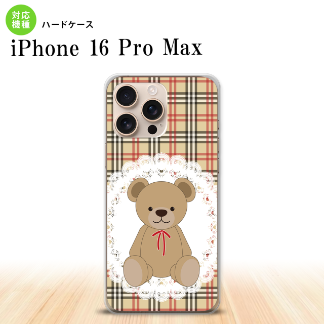 iPhone16 pro max iPhone16 pro max スマホケース 背面ケース ハードケース くま チェック レース 茶 赤 2024年 9月発売 nk-i16pm-754
