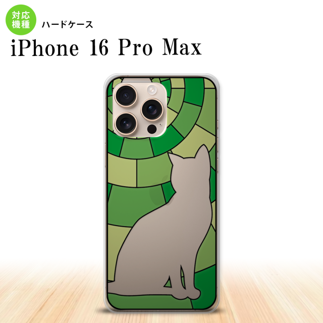 iPhone16 pro max iPhone16 pro max 背面ケース カバー ステンドグラス風 おしゃれ 猫 グリーン ステンドグラス風 2024年 9月発売 nk-i16pm-sg35