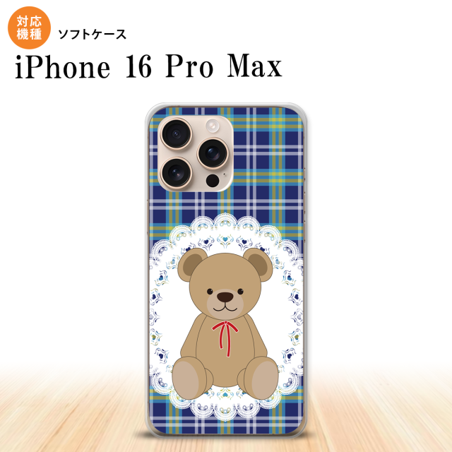 iPhone16 pro max iPhone16 pro max スマホケース 背面ケースソフトケース くま チェック レース 青 2024年 9月発売 nk-i16pm-tp758