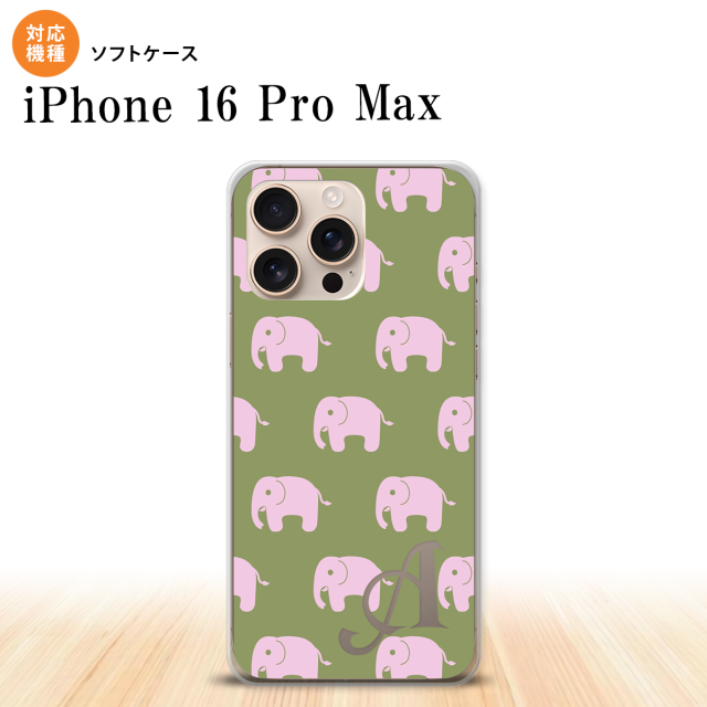 iPhone16 pro max iPhone16 pro max スマホケース 背面ケースソフトケース ゾウ モスグリーン +アルファベット 2024年 9月発売 nk-i16pm-tp773i