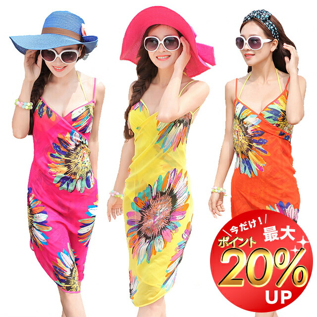 花柄リゾートパレオ ワンピース風パレオ フォン ワンピース 水着パレオ 大判パレオ 体型カバー 選べる9色 メール便送料無料 1000円ポッキリ 買い周り かわいい スパ サウナ プール 夏休み 海 旅行 薄手 持ち運び プレゼント