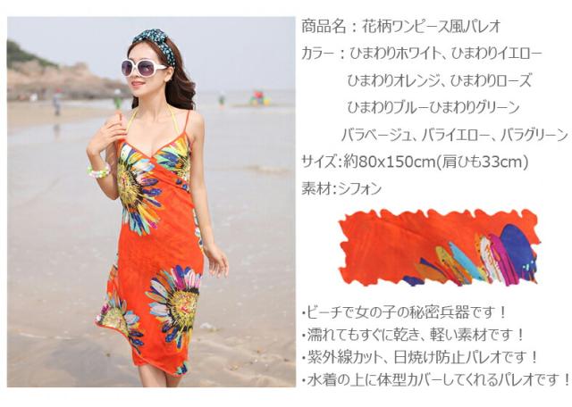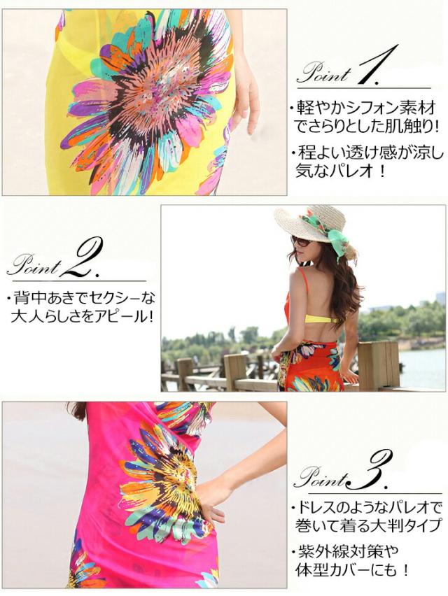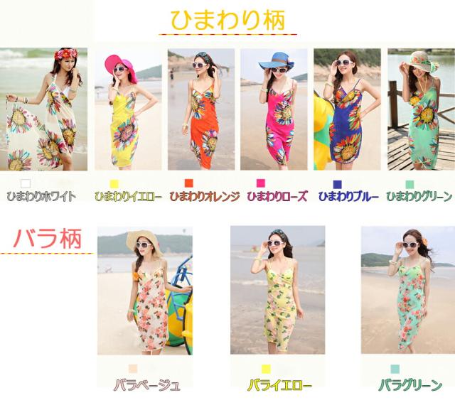 花柄リゾートパレオ ワンピース風パレオ ワンピース 水着パレオ 大判パレオ 体型カバー★選べる9色