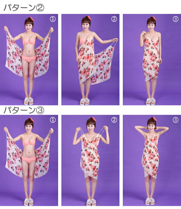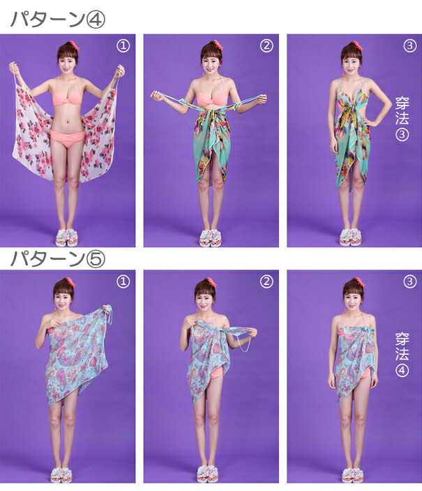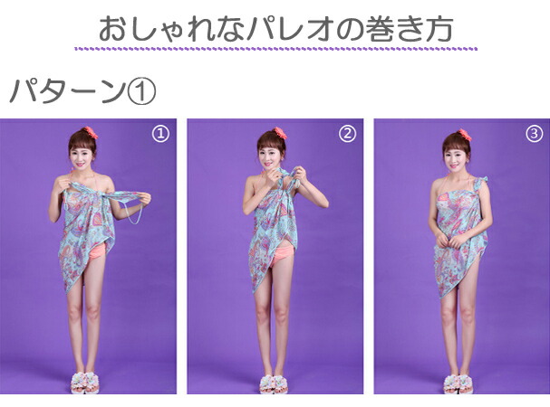 Point3.ドレスのようなパレオで巻いて着る大判タイプ!紫外線対策や体型カバーにも!